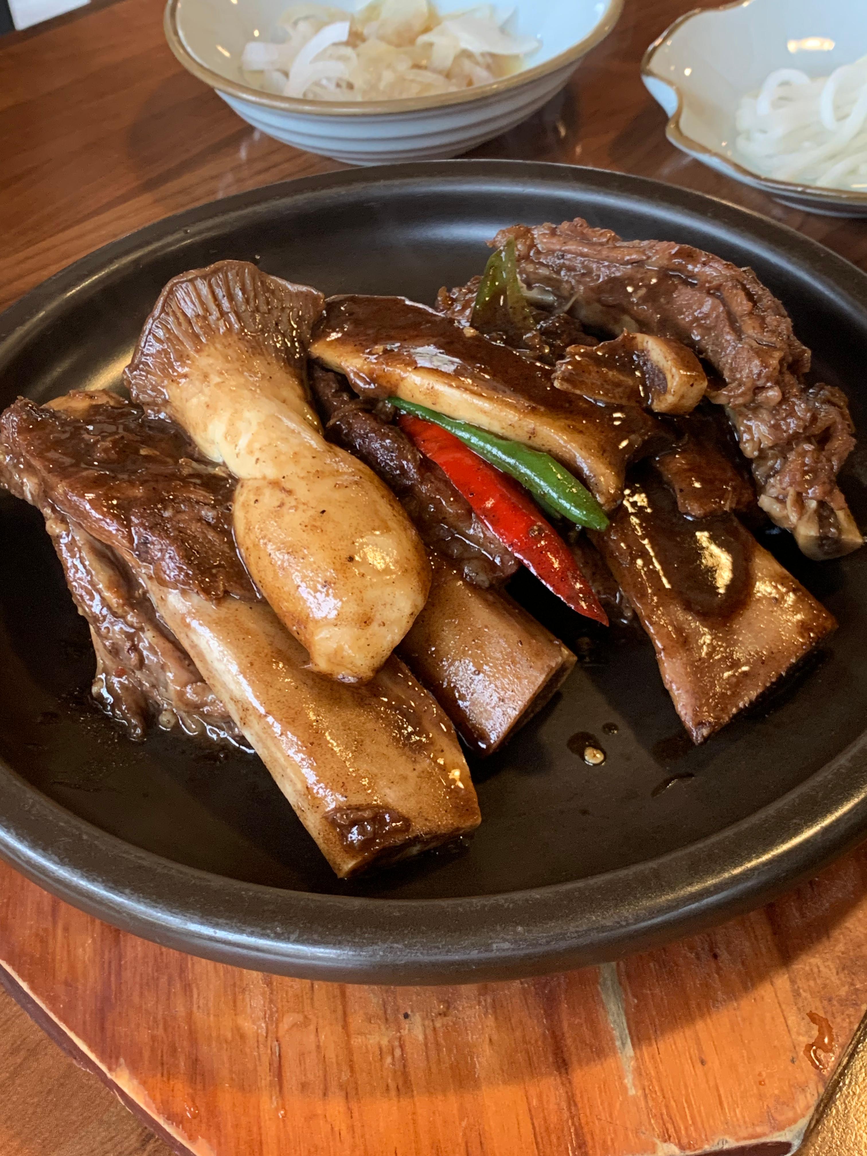 We also ordered braised short ribs (galbijjim) as part of the set menu. Large king oyster mushrooms were included, and the meat was tender and easy to eat.